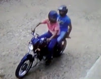 Nas imagens é possível ver os dois assaltantes chegando armados em uma moto Honda Titan cor azul, placa não anotada e escondendo o rosto de capacetes. Eles ameaçam os funcionários e os clientes que estão no mercadinho.