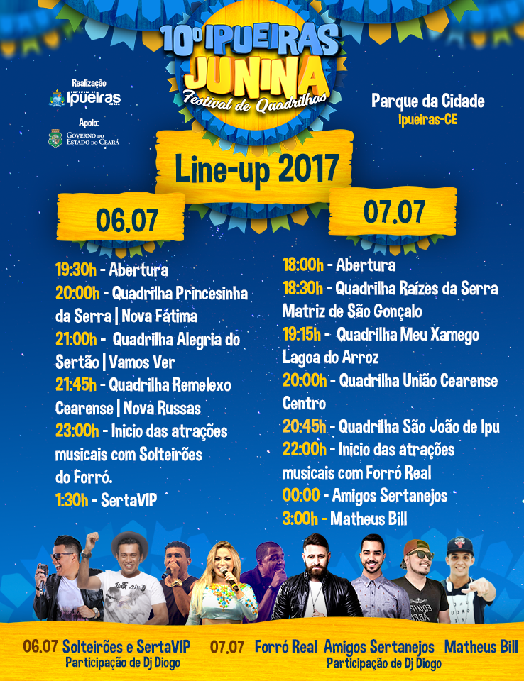 O maior evento da região norte do Estado acontece em Ipueiras nos dias 6 e 7 de julho. Em sua 10ª Edição do Ipueiras Junina, os organizadores esperam um público recorde, com expectativa para 10 mil pessoas.30