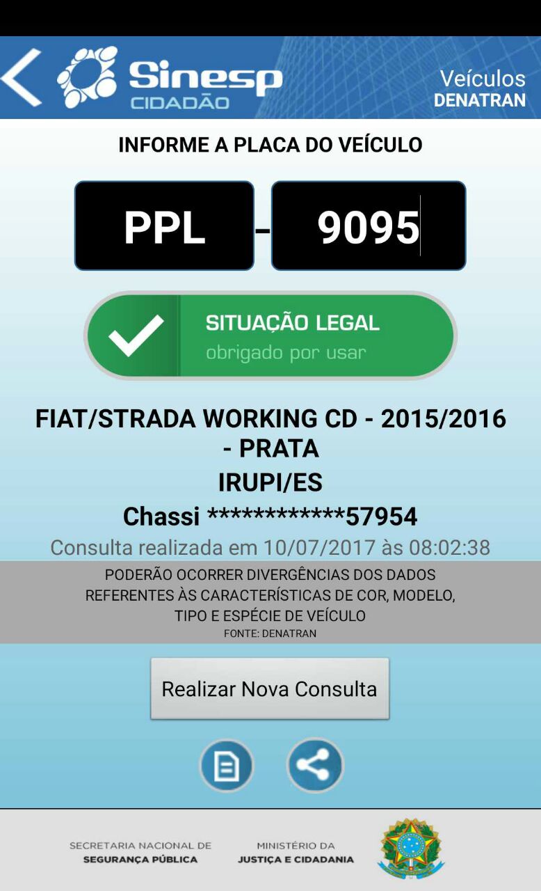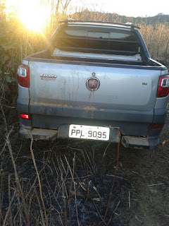 O veículo Fiat/Strada, ano 2015/2016, de cor prata, placa PPL 9095 – Irupi/ES, foi encontrado abandonado na noite deste domingo 09/07/2017, nas margens da CE 176 entre a Localidade de Cruzeta e a cidade de Catunda.