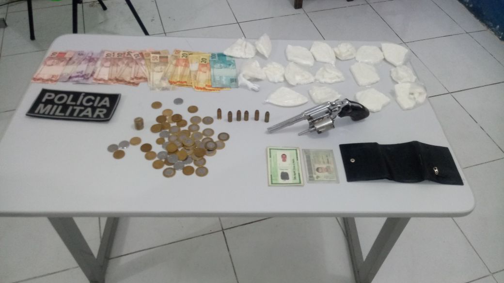 Diante da denuncia os policiais foram até o local, e ao chegarem no referido Bairro, um indivíduo ao perceber a presença dos PMs, acabou fugindo da residência e abandonando revólver calibre 38, munições calibre 40, ainda 850 gramas de pasta base e R$ 670,00 em espécie.