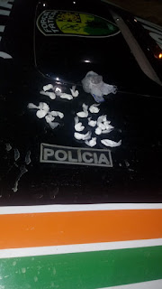 4° Francisco Diassis Amancio e Auricesar Daniel de Araújo, todos disseram ter passagens pela polícia em diversos crimes como: homicídio, falsificações e tráfico de drogas, por isso a composição resolveu revistar o carro os policiais encontram no veículo a quantia de 19(dezenove) pacotinhos de cocaína qtde: 8g 1 tablete de maconha : 10g, 6 cartelas de selo (Brasil Uísque),também foram encontrados em posse dos elementos 29 litros de Black White, 8 litros de Vodka Slova, 6litros de Ypioca c/guaraná , 3 litros de Red Label ,1 litro de Old Par ,