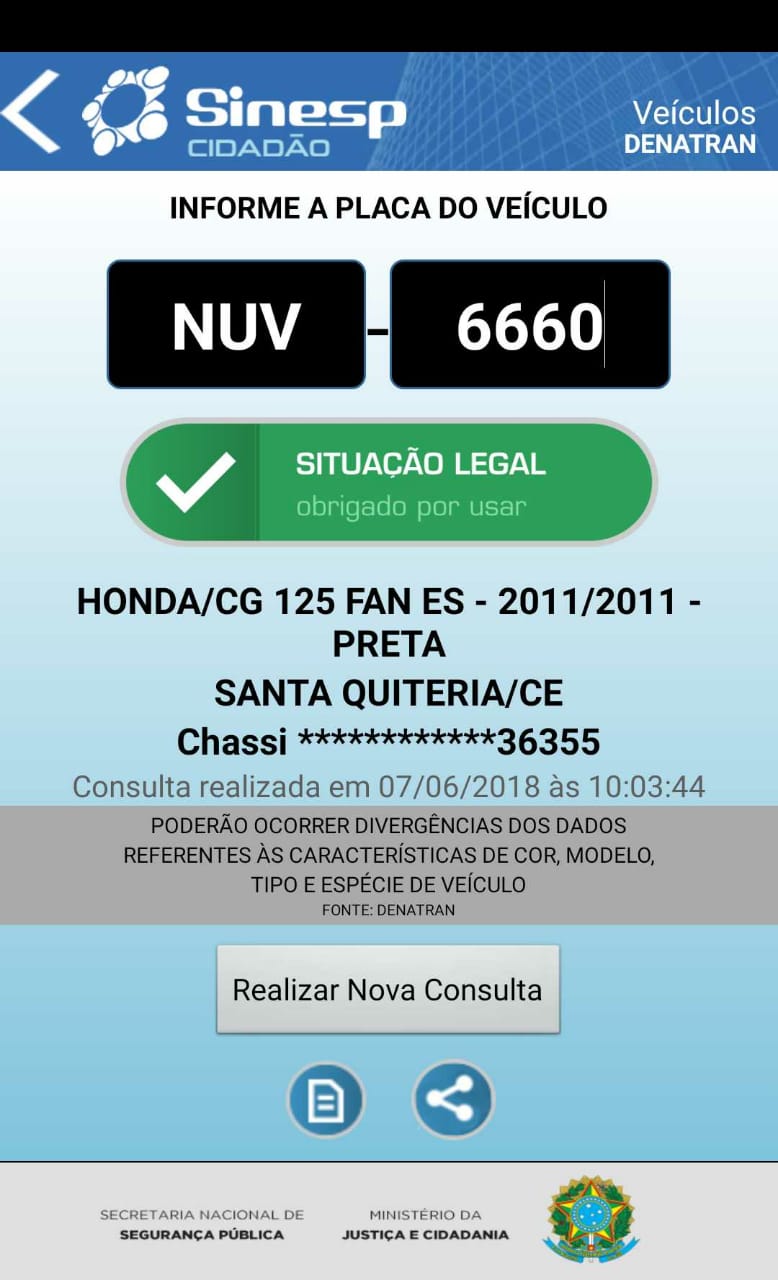 Ainda não está confirmado, porém existe uma possibilidade dessa moto ter sido utilizada em um homicídio ocorrido na noite anterior no Bairro Jovinão em Nova Russas onde a vítima foi um adolescente.