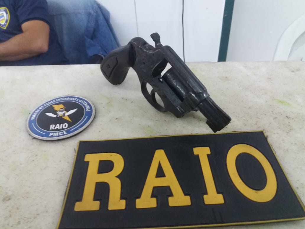 Arma apreendida: Revólver calibre .38 marca Rossi capacidade para 5 munições com numeração ilegível.