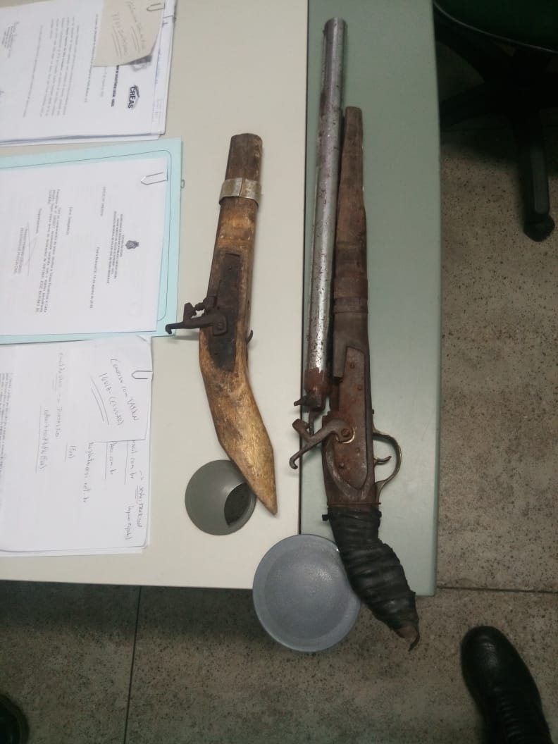 A equipe foi até a casa de Antônio Rocha que fica na localidade de Cruzeta – Pedra Branca, e efetuou a prisão do mesmo e o conduziu à Delegacia do município de Pedra Branca onde foi apresentado à autoridade policial o Bel. Thiago Teixeira Salgado que autuou o acusado no Art. 157 no CPB, também foi encontrado em um terreno baldio próximo à casa do acusado duas armas de fogo artesanal.