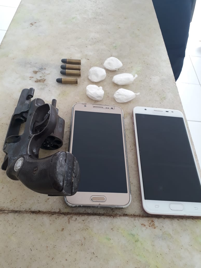 Já o Jairo Nascimento Ferreira, vulgo Raí, foi autuado em flagrante por tráfico de drogas e porte ilegal de arma.