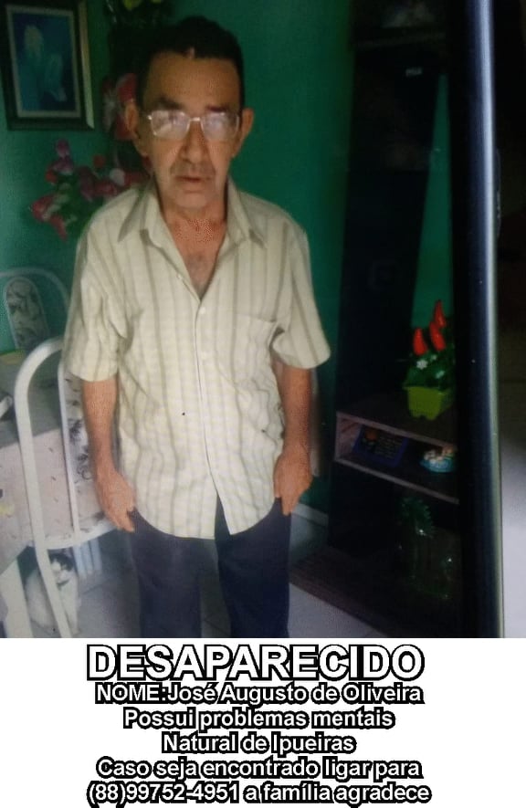 O caso mais recente, o Sr. José Augusto, está sumido, de forma misteriosa. (Contato Para Informações: 997524951).