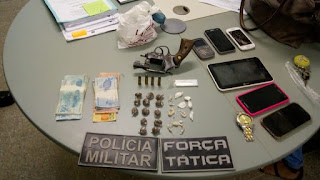 Aline reside no Centro de Poranga, e na residência da mesma policiais apreenderam cerca de 800 reais em dinheiro, 15 pedras de crack, 13 trouxas de maconha, 05 trouxas de cocaína, e ainda um revólver calibre 38, municiado ( que estava em baixo de um armário dentro da casa de Aline), bem como o carro de placa CQR 5329 gol de cor cinza, também foi apreendido.