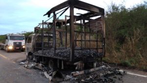Um caminhão com carga de cerveja pegou fogo na CE-187, na cidade de Ipú, Região Norte do Ceará. De acordo com o Corpo de Bombeiros, uma pane elétrica acabou provocando o incêndio por volta das 21h desta segunda-feira (1º). O condutor do veículo não ficou ferido.