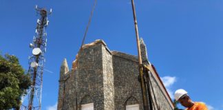 Parte da estrutura que desabou da Igreja do Céu, em Viçosa...