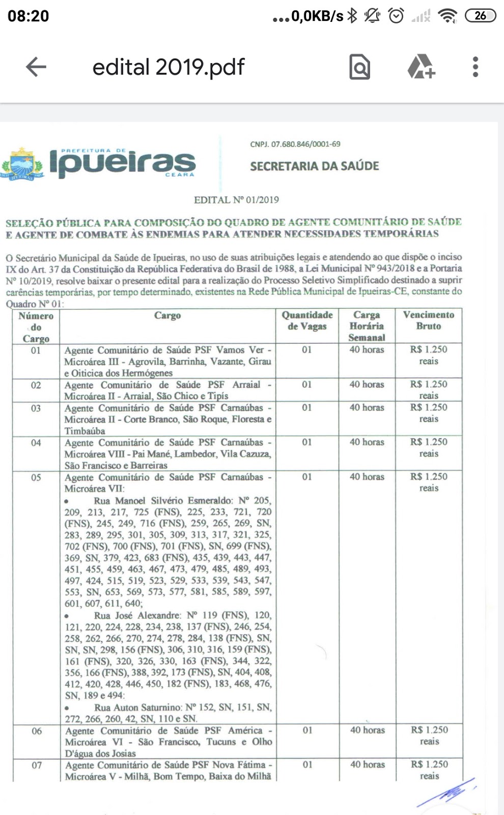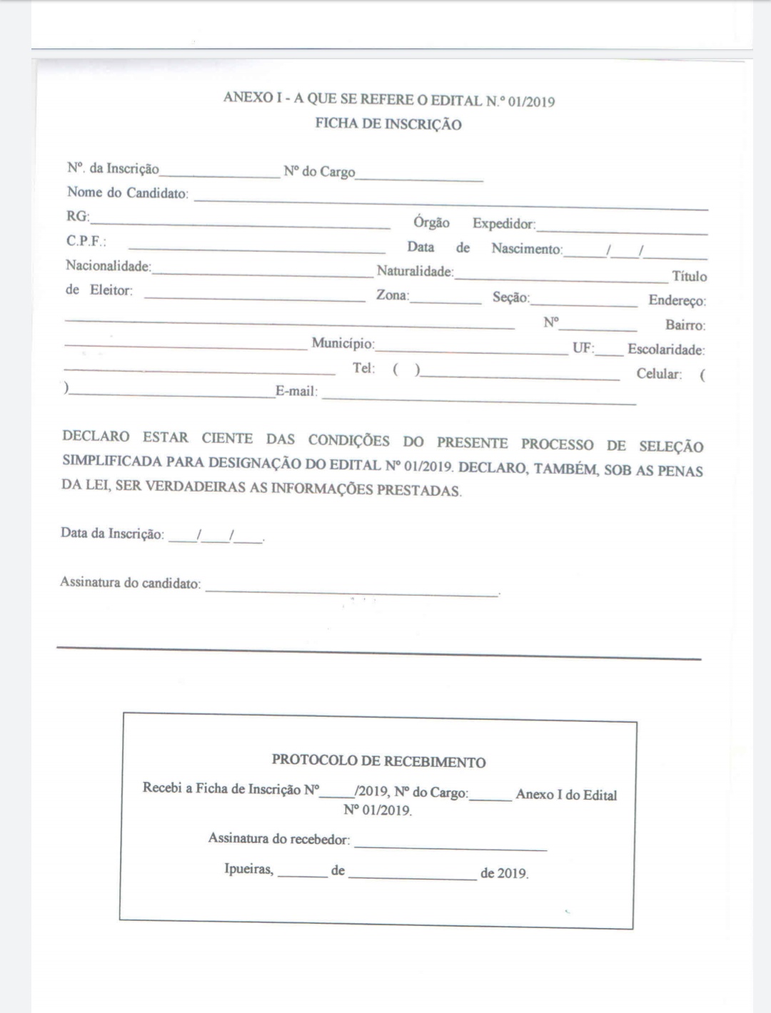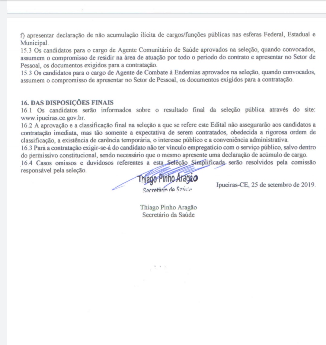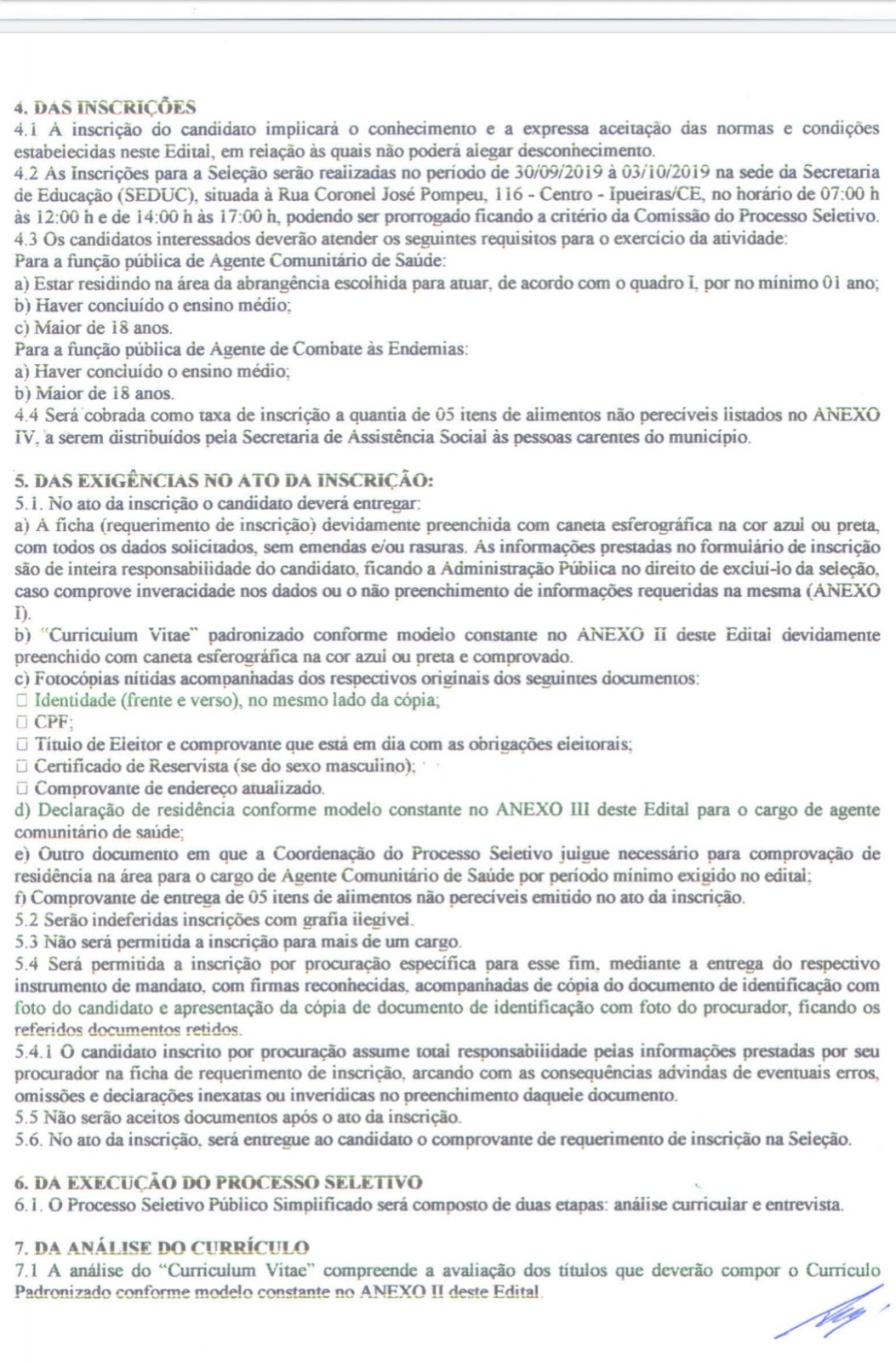 Para mais informação, leia o edital abaixo ou visite o site da Prefeitura de Ipueiras.