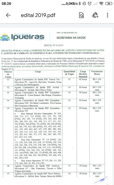A Secretaria de Saúde de Ipueiras está com edital aberto para a seleção pública de Agente de Combate às Endemias e Agente Comunitários de Saúde para necessidades temporárias.