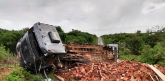 Caminhão tomba e obstrui estrada que liga Ararendá a Poranga
