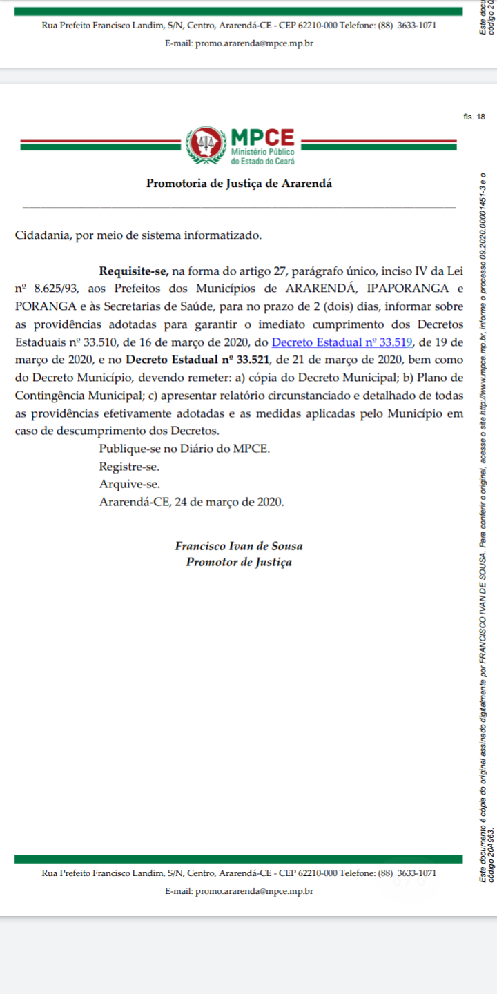 Ararendá-CE, 24 de março de 2020.