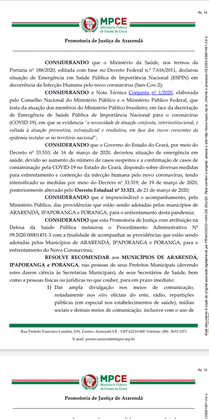 (COVID-19), em que se evidencia “a necessidade de atuação conjunta, interinstitucional, e