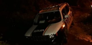 Viatura da Polícia Militar cai em buraco no Distrito de Abílio...