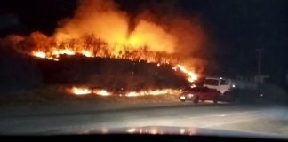 Fogo consome vegetação próximo a um posto de combustível em Orós,...