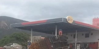Ipu CE – Caminhão carregado de madeira tomba na CE-329 no...