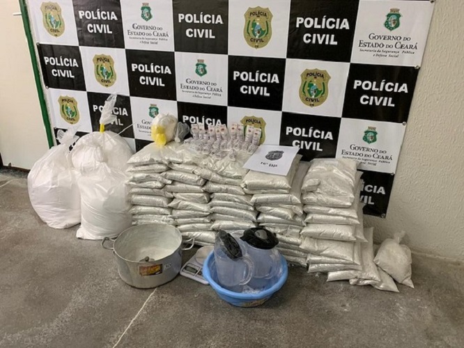 Cerca de 120 quilos de substâncias usadas para misturar drogas foram apreendidos pela Polícia Civil em uma residência no Bairro João XXIII, em Fortaleza. Na ocasião, os militares também apreenderam na casa um quilo de cocaína e três prensas hidráulicas. Um homem de 36 anos foi preso.