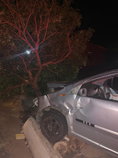 Segundo populares a motocicleta ia atravessando no meio da Avenida vindo o condutor do automóvel desviar e perder o controle chegando a quebrar a Motocicleta em pedaços.