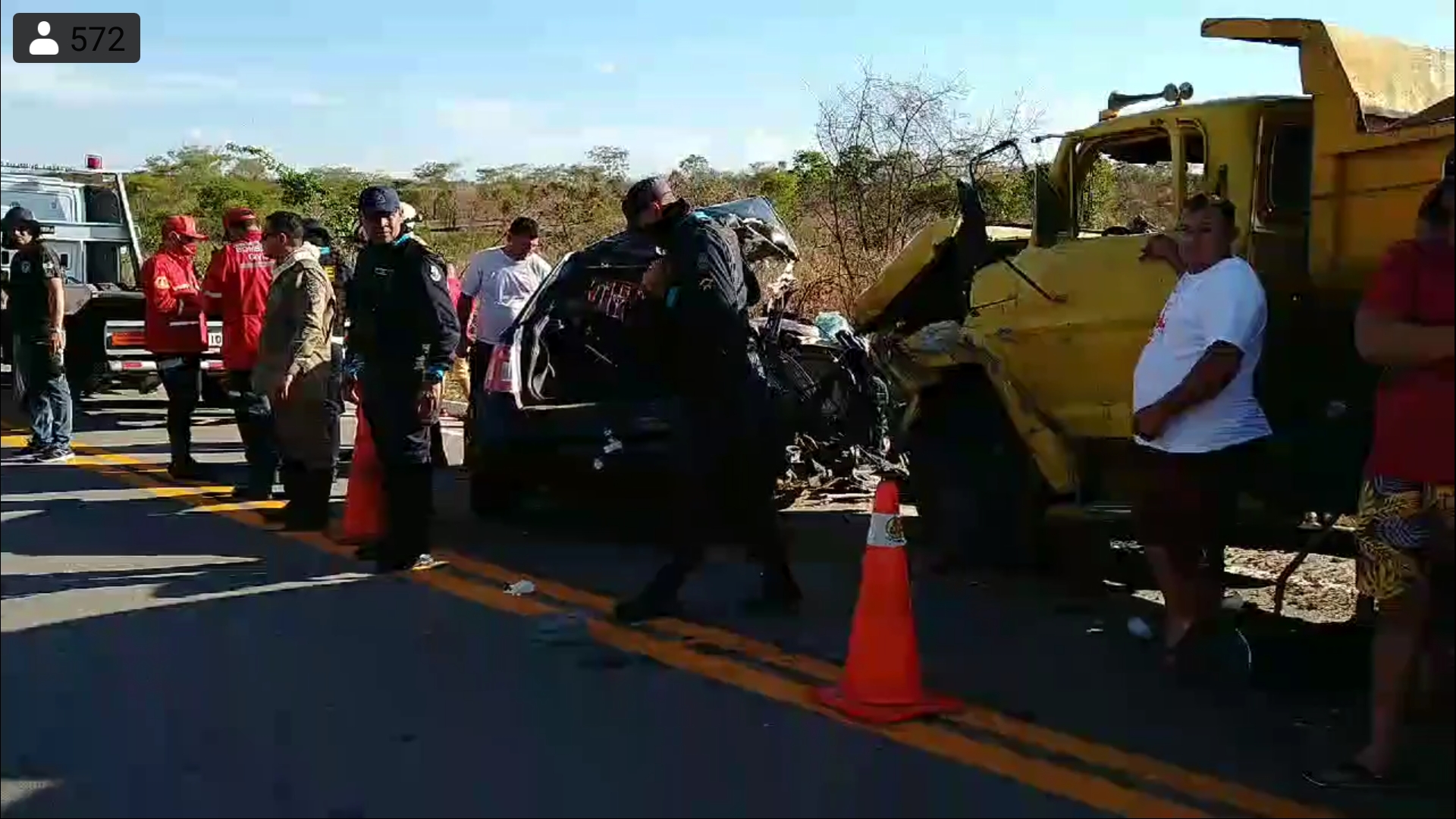 Uma colisão frontal entre um automóvel Fiat Stilo, cor cinza, placa HNA 7362, e um caminhão caçamba Ford F12000, de cor amarela, placa GMV 5373, deixou o saldo da morte de 04 pessoas da mesma família, entre elas, duas crianças de 02 e 03 anos de idade.