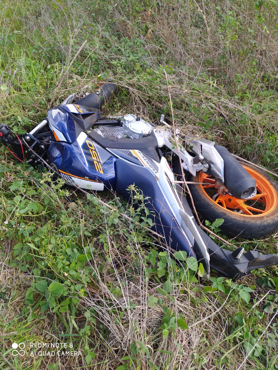 Os PMs foram ao local onde constataram o fato onde a vítima havia caído da motocicleta e já estava morto.