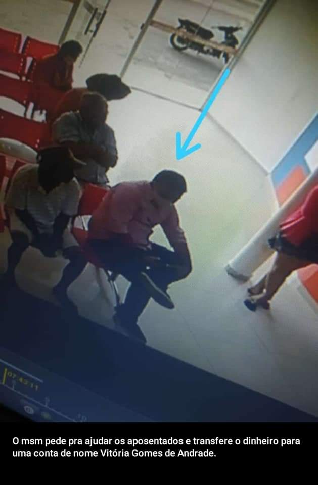 Era por volta das 09h10min da manhã desta terça feira 05/01/2021, quando os PMs Cabo Torres e SD Sobrinho na viatura 7412, foram acionados pela vítima que relatou que por volta das 08h20 uma pessoa no Banco Bradesco teria lhe pedido pra ajudar o mesmo a tirar seu dinheiro, que o acusado transferiu seu aposento uma quantia de 1.000,00 (um Mil Reais) para uma conta de nome: Vitória Gomes de Andrade.A vítima relata que só se deu conta do golpe quando foi no chegue e pague tirar o extrato e lá informaram da transferência.