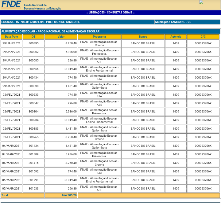 Tamboril: R$ 164.305,20