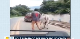 Motorista flagra homem arrastando boi com corda amarrada em caminhonete no...