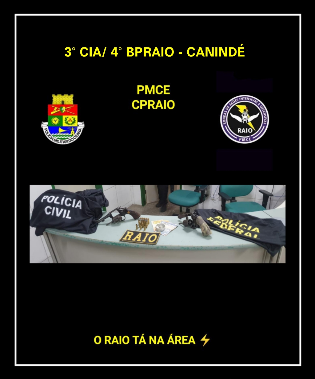 Que ao ser indagado pela suposta arma o militar negou e autorizou as buscas na residência. Sendo a autorização filmada e registrada por escrito. Ao procederem com as buscas os PMs localizaram dois revólveres calibre .38, vasta quantidade de munições, certa quantidade de droga, dinheiro e camisas que se assemelham aos fardamentos das Polícias Civil e Federal. Diante dos fatos foi dada voz de prisão ao suspeito e feita condução a presença da autoridade competente para os procedimentos cabíveis, concomitante foi informado ao Major de Exército Alexandre Silva da 10° Região Militar, Comandante imediato, que acionou a Polícia do Exército para traslado.