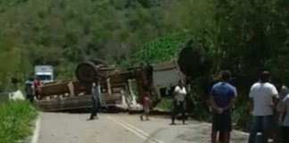 Uma pessoa morre e três ficam feridas após caminhão capotar na...