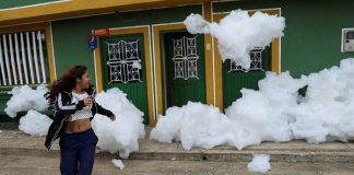 Espuma ‘invade’ cidade na Colômbia. Vídeo