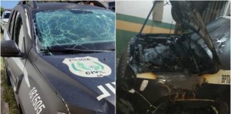 Carro da PM é atingido por artefato explosivo, e veículo pega...