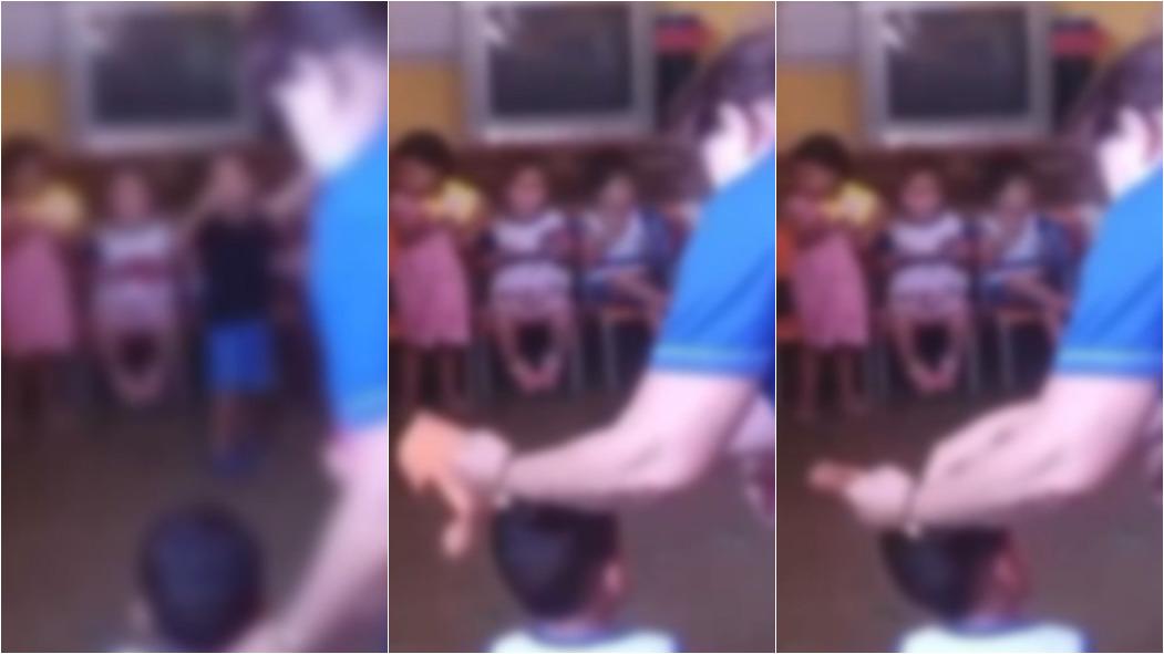 Legenda: Vídeo foi publicado pela própria creche nas redes sociais. Agressão foi percebida pela mãe da criança. Foto: Reprodução