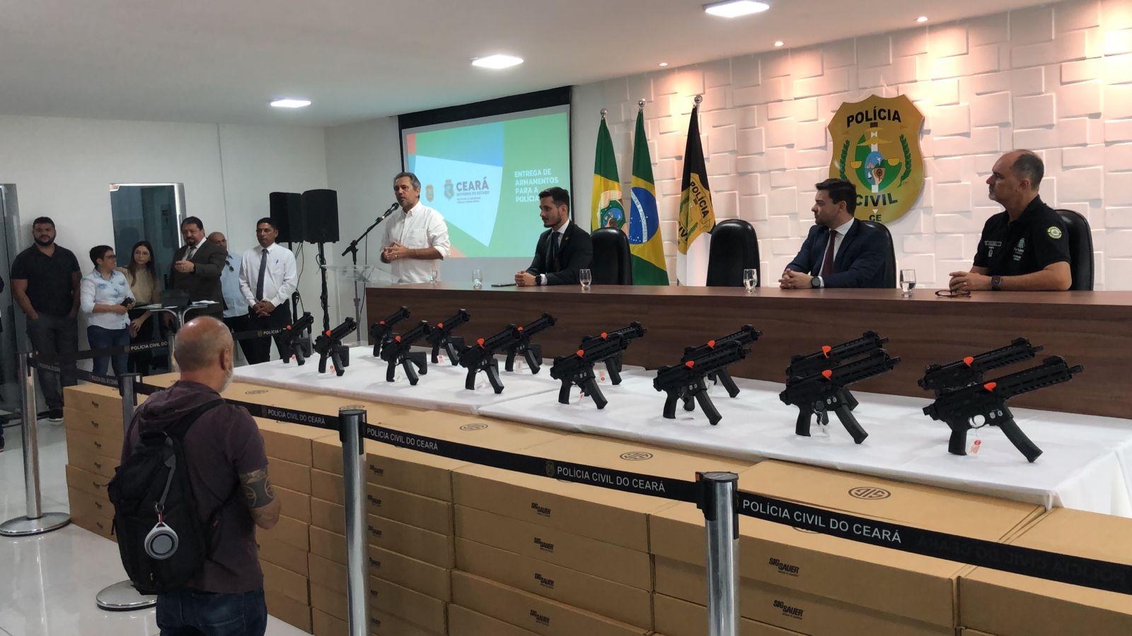 O anúncio foi feito durante evento de entrega de 150 submetralhadoras para a PC-CE, na manhã desta terça-feira (8), na sede da Superintendência da Polícia Civil, no Centro de Fortaleza.
