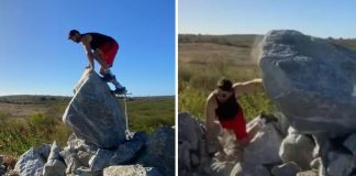 Rocha cai sobre homem enquanto ele tentava tirar foto em Cedro