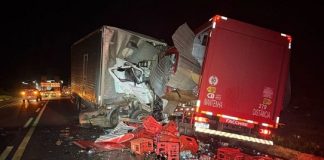 Dois motoristas morrem em colisão frontal entre caminhões na BR-116 no...