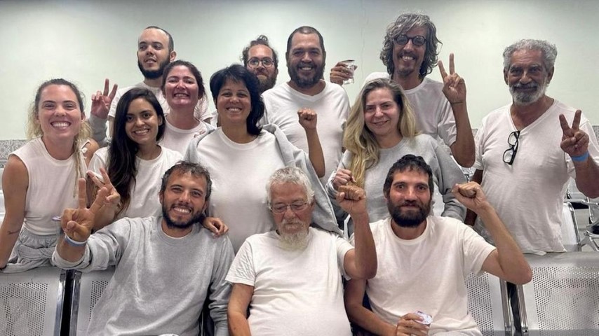 Imagem de Luizianne Lins e outros tripulantes que estavam presos em Israel.