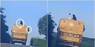 Ônibus escolar no CE é flagrado com alunos sentados no teto...