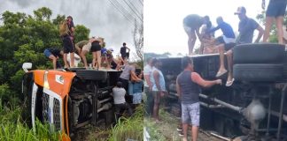 Ônibus tomba a caminho de Canoa Quebrada CE, e passageiros ficam...