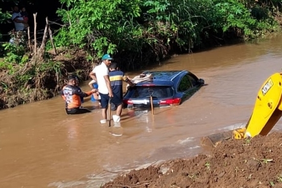 Na manhã deste domingo (1) de março de 2026, um veículo foi retirado de dentro de um riacho, após ter sido arrastado por uma forte correnteza, no município de Ararendá-CE.