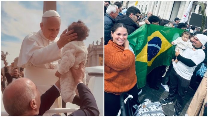 Um registro do momento, feito pela mãe da criança, a psicóloga Ana Beatriz, mostra o momento em que o pai da menina, Rony Brandão, entrega a filha para um segurança do papa, que por sua vez põe a pequena nos braços do pontífice. Leão XIV então abençoa a bebê e a devolve à família.